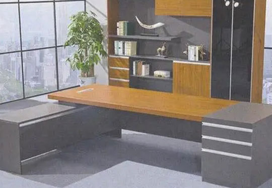 油漆类大班台中由于木材的缺乏和昂贵基材一般都用中纤维板(或高纤维板)和木档组合而成,也有用实木的但班台价格是中纤板的好几倍或几十倍不等;板式大班台是由防火板为台面,钢制脚架或板材脚架;玻璃大班台是有钢化玻璃台面和钢制脚架组合而成;